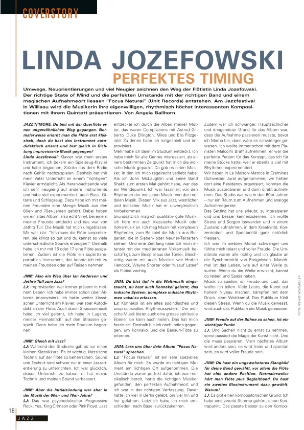 Among lots of positive press quotes and interviews from different Magazines about the album Focus Natural, my face appeared on the title of July’s swiss magazine Jazz’n’More! Thanks Angela Balhorn for the beautiful two pages interview!